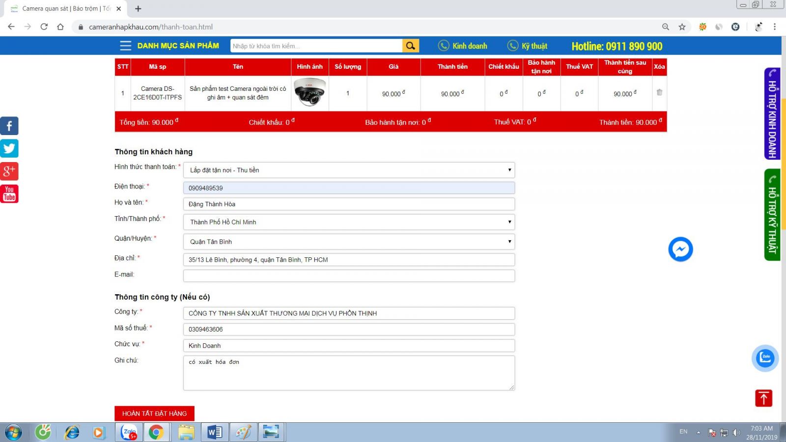 Chọn “ HOÀN TẤT ĐẶT HÀNG ” để hoàn thành việc đặt hàng.